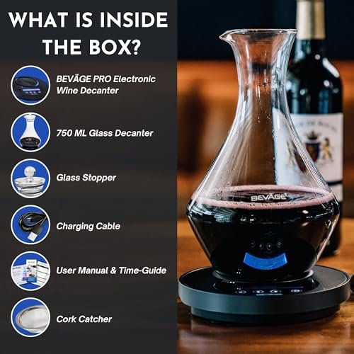 • BEVAGE PRO: Elevate Your Drinks – Spirits, Wines and Beverages. A perfect blend of style and functionality for the discerning enthusiast and the every day drinker, whether at dinner, or with a group. The BEVAGE PRO electronic decanter delivers immediate scientifically-proven improvements in flavor, depth, mouthfeel and complecity – replacing years of aging and true decanting far beyond the possibilities of affordable and very limiting momentary aerators flooding the marketplace that only work with red wine.