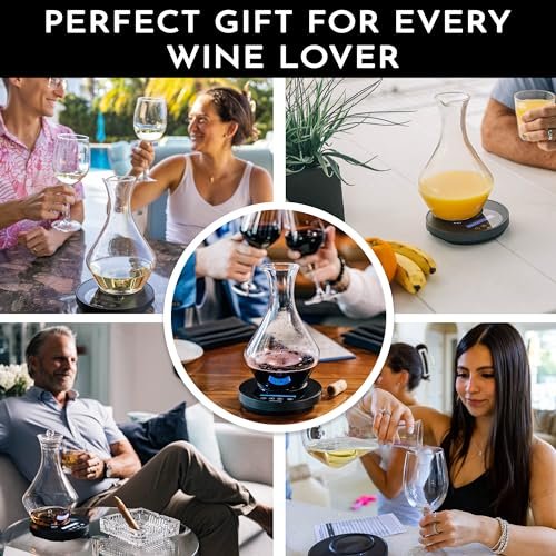 • The Ultimate Gift for All Occasions. More than just a wine or spirit accessory, this versatile product is the ideal gift for anniversaries, Mother’s Day, Father’s Day, or any special celebration. It was created to predictably enhance the bouquet and flavor of wines, spirits, and other beverages and it’s perfect for elevating the home bar experience. This premium multifunctional electronic decanter technology delivers exceptional taste anywhere, anytime.