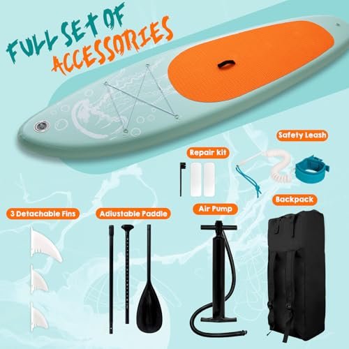 - 【Accessories Kit】SUP accessories include an adjustable paddle, fins, pump, leash, backpack, and repair kit. We aim to ensure a seamless and worry-free paddleboarding experience for you