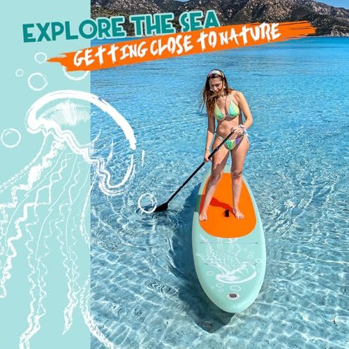 - 【Durable Materials】Our inflatable paddle board is made with military-grade PVC materials and drop-stitch construction, ensuring the board can withstand impacts and abrasions