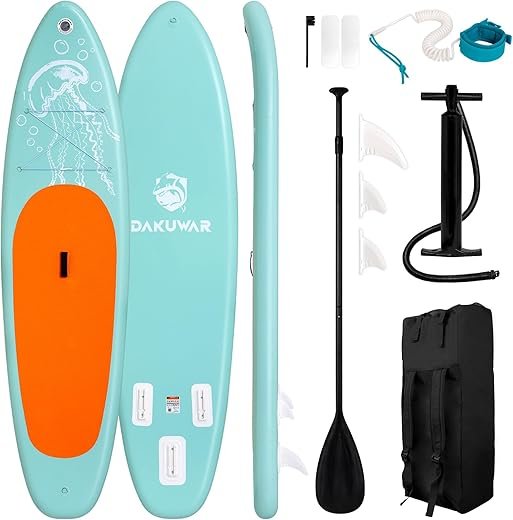 - 【Versatility for Various Scenarios】DAKUWAR inflatable paddle board can be used in various water conditions, such as the ocean, lake, and river, and is versatile enough for yoga, surfing, exploring, traveling, and fishing
