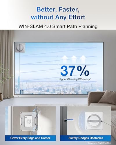 It gives me peace of mind, knowing that the robot is designed to avoid bumps and falls. Plus, the Win-SLAM 4.0 path planning is impressive—it really knows how to navigate around my windows efficiently, hitting every spot while avoiding obstacles like window frames.