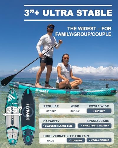Flypark 10’8/11’x35” Fishing&Family Stable Inflatable Paddle Boards, Extra Wide SUP Paddleboard Inflatable, 430lb/3 People, Stand Up Paddle Board…