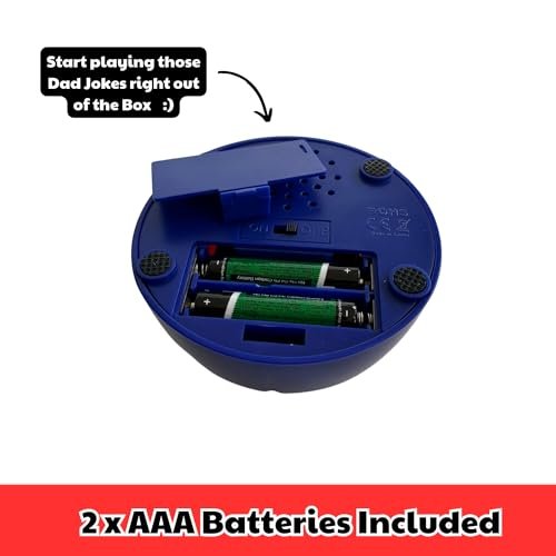 • EXTRA “FUNNY” DAD JOKES – Good old fashioned, family friendly and extra cheesy dad jokes. Hours of family fun and entertainment. The Dad Joke 3000 button features 75+ cheesy dad jokes and has 2 x AAA Batteries – so those Dad Jokes are ready to launch right out of the box.