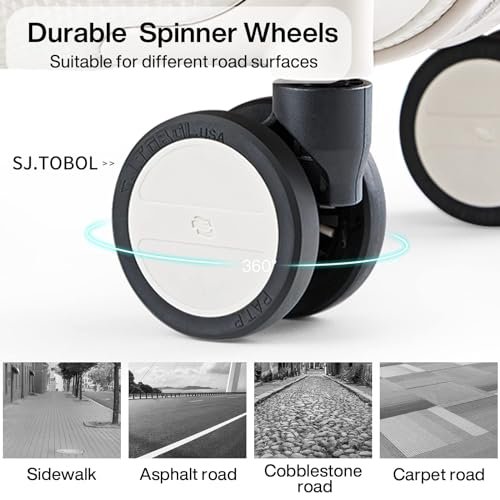 - 【High Quality Accessories】SJ . TOBOL durable spinner wheels,It is composed of precision shaft center and thickened TPE wheel skin, which is very wear-resistant,quieter and has strong bearing capacity, It is applicable to different roads such as cobblestone road and carpet road. Smooth and durable 5-strand reinforced explosion-proof zipper reverse coil prevents burst zipper. Travel-approved combination lock is safe and convenient. Ergonomics telescopic handle with multi-steps adjustment.