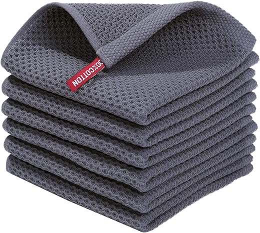the homaxy 100% cotton waffle weave kitchen dish cloths are perfect for everyday use they’re ultrasoft and absorbnt while also quick drying which makes cleaning up a breez the dark grey color adds a stylish touch and the 6 pack means you always have a fresh one ready to go they’re durable and gentle on dishes making them a great addition to any kitchen