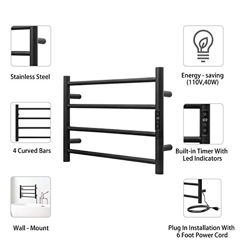 - [PREMIUM QUALITY WITH ELEGANT LOOK]: The bath towel warmer is made of durable 304 stainless steel, easy to clean and durable use. IP56 Waterproof standard and wall-mounted design maximizes your floor space.