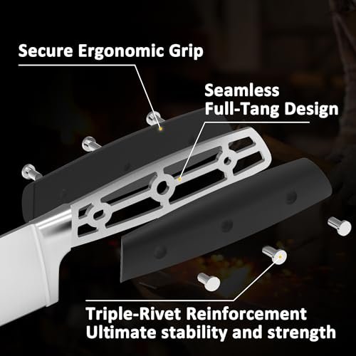 - Comfortable grip kitchen knives: Full-tang and triple rivet construction ensures perfect balance and a secure grip, reducing hand fatigue during prolonged use