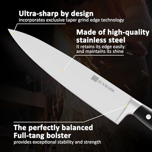 Each knife’s got a full-tang stainless steel blade super sharp, tough, and ready for anything, from mincing garlic to slicing through a steak. it’s the perfect enhancement for any home cook’s countertop. Highly recommended.