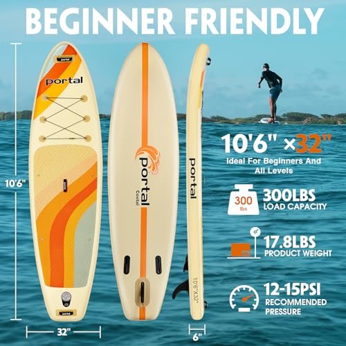 PORTAL SUP Inflatable Paddle Board for Adults 10’6” Stand Up Paddleboard,Non-Slip Deck Blow up Paddle Boards with Adjustable Paddle, Carry Bag,…