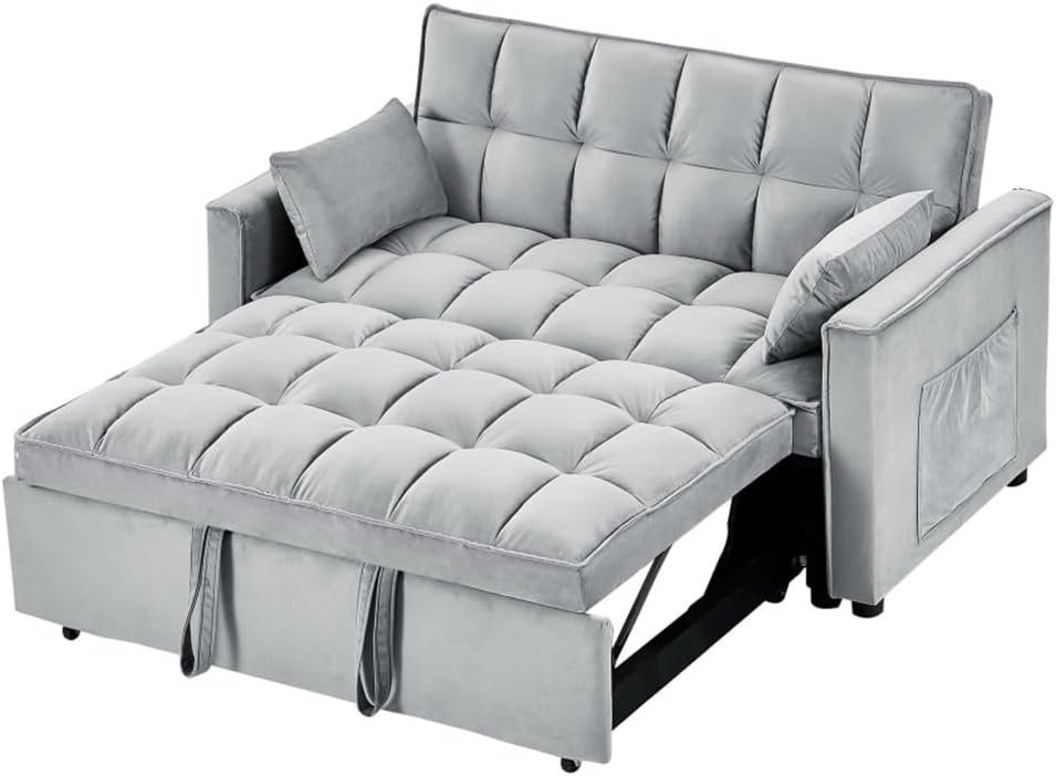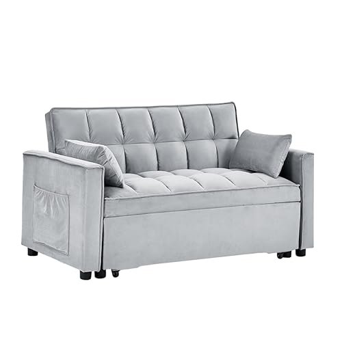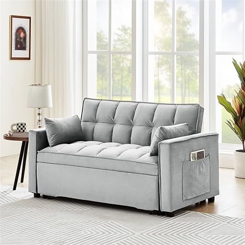 The 55″ Velvet Convertible Sleeper Sofa Couch with Pull-Out Bed is the perfect bland of comfart, styele, and practicality. Its laxurious valvet fabric adds a touch of elegance to any living space, while the compact design makes it ideal for small apartments, guest rooms, and studios. The smooth pull-out mechanism tranforms it into a cozy bed in secondary, providing convenient extra sleeping space for guests. With included pillows and handy side pockets, it delivers both comfort and functionality. Sturdy, soft, and beautifully designed—this sleeper sofa is a smart investment for anyone who wants versatility without compromising style.
